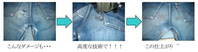*Gパン破れリペア (500円玉大の穴の大きさ)